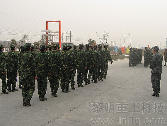 河南黎明重工科技股份有限公司100余名新招的售后服務(wù)工程師以軍訓(xùn)活動的形式塑造了黎明人的精神風(fēng)貌。黎明重工科技近日對2009年招收的100多名新員工在上街機(jī)械裝備工業(yè)園進(jìn)行了為期9天的軍訓(xùn)。